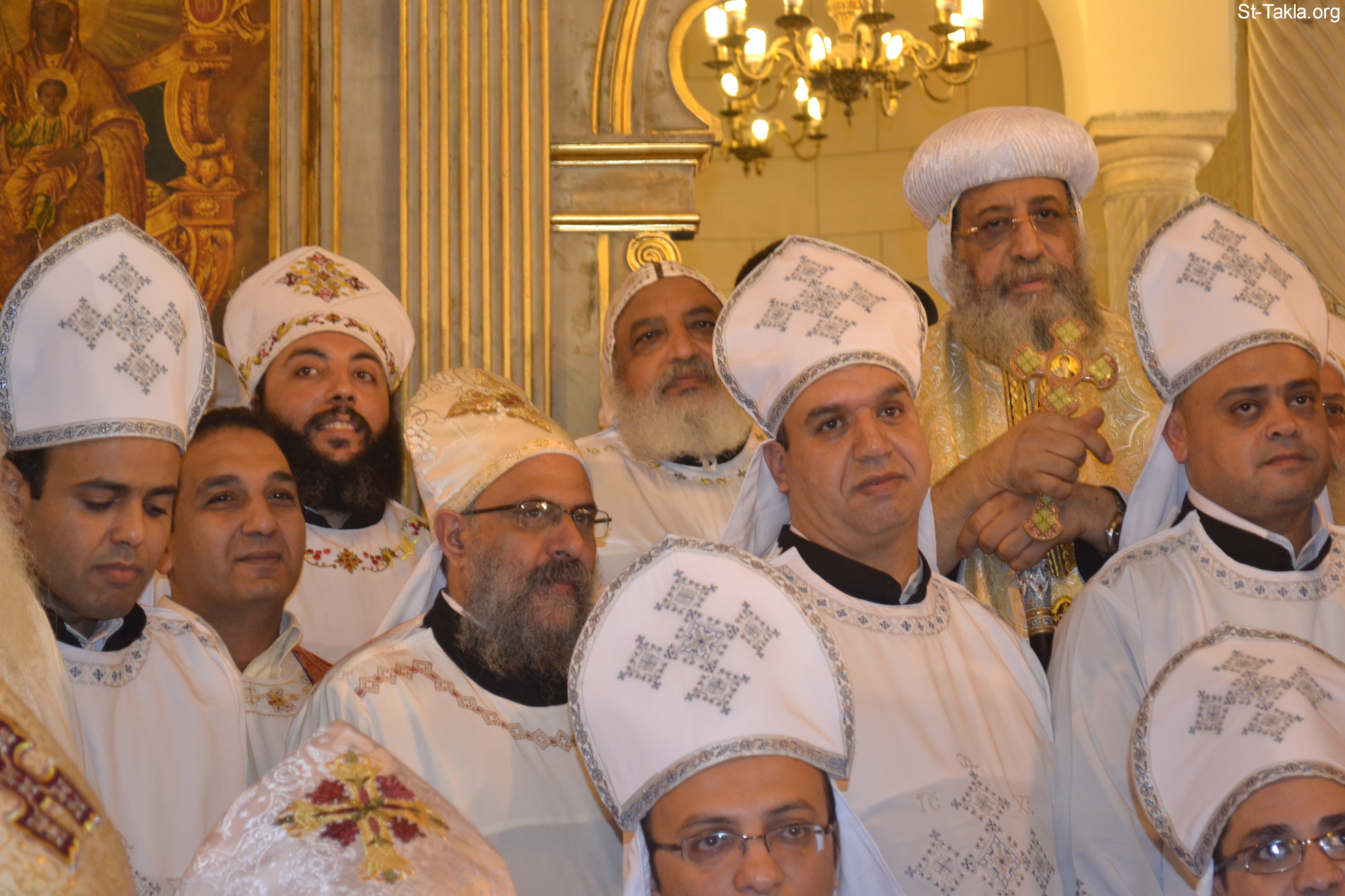 صورة جماعية من صور رسامة القس رافائيل فكري عبده وكهنة آخرين بيد قداسة البابا تواضروس الثاني، مع ثمانية كهنة آخرين من الإسكندرية، 9 نوفمبر 2013 - تصوير مايكل غالي لـ: موقع الأنبا تكلا هيمانوت.