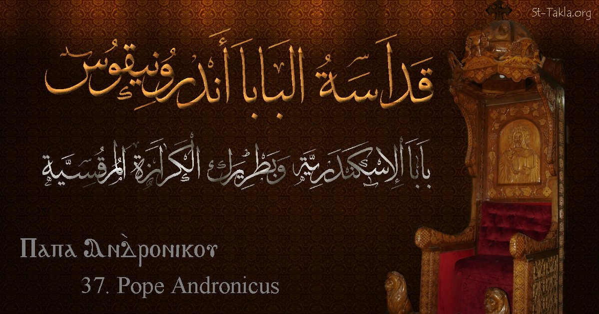 البابا أندرونيقوس - بابا الإسكندرية وبطريرك الكرازة المرقسية (37) - الاسم باللغات العربية، القبطية، الإنجليزية - تصميم مايكل غالي لـ: موقع الأنبا تكلا هيمانوت، نوفمبر 2019 م.