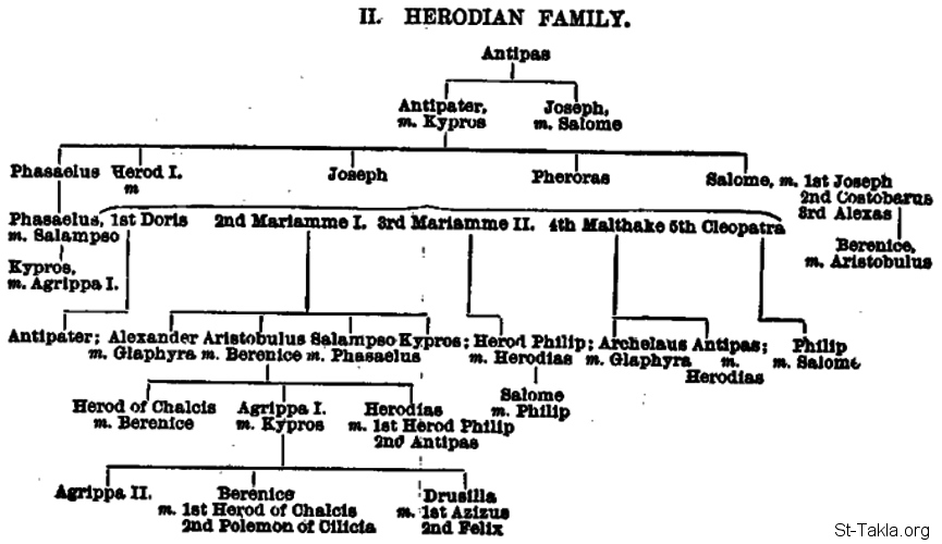 عائلة هيرودس - شكل من كتاب حياة السيد المسيح والزمان الذي عاش فيه - تأليف: ألفريد إدرشيم - ترجمة وعرض: القمص أنطونيوس فكري.
